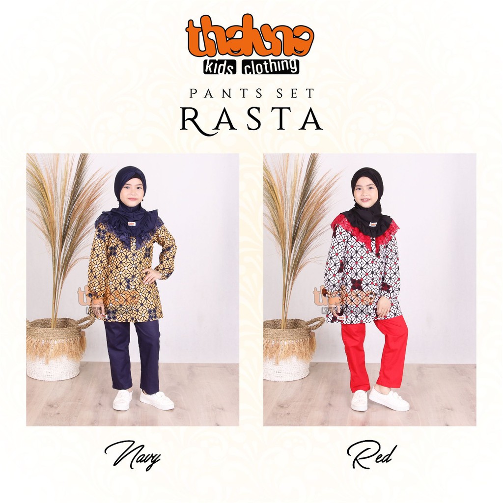 Setelan Tunic cantik bermotif batik dengan aksen rumbai brokat premium pada bagian dada, kancing pada sepanjang dada sebagai bukaan. Lengan menggunakan karet, terdapat tali pada bagian pinggang. Di padukan dengan celana panjang berbahan katun jepang twill polos berwarna senada dengan tunic. Sekeliling pinggang menggunakan karet, terdapat saku pada sisi kanan celana. Tersedia ukuran S, M, L , XL, 10, 12. Terdapat 2 pilihan warna; Navy & Red.